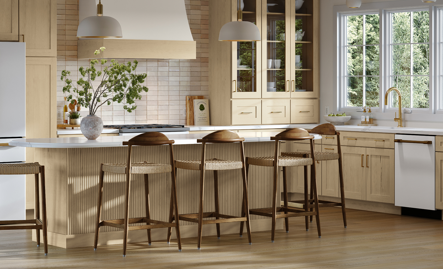A gently curved silhouette that naturally contrasts with cabinetry.