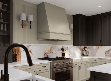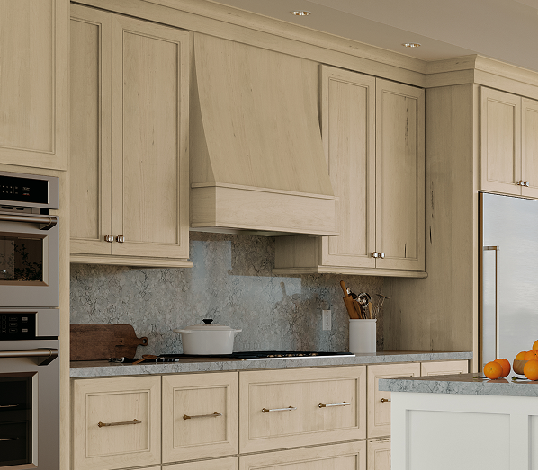 CABINETS: Durham | Maple | Daybreak WALL HOOD: Maple | Hearthstone ISLAND: Maple | Daybreak