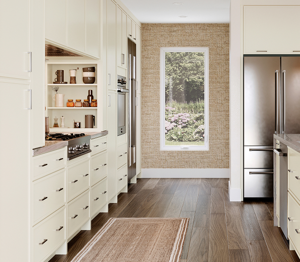Apply Hearthstone to the majority of cabinetry and apply secondary colors to smaller accent areas.