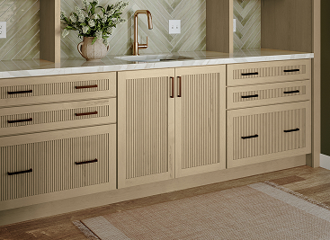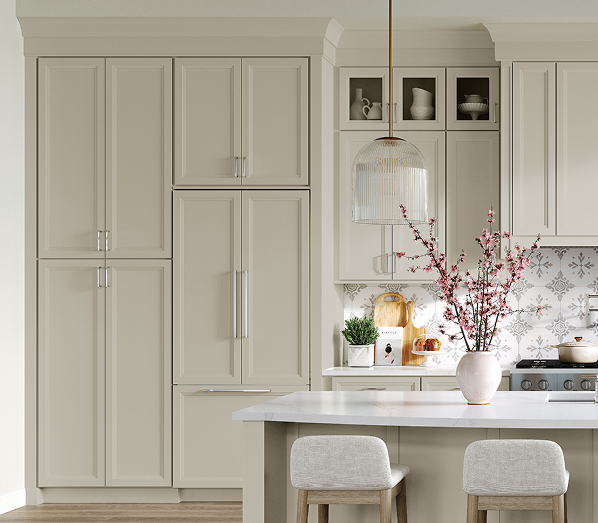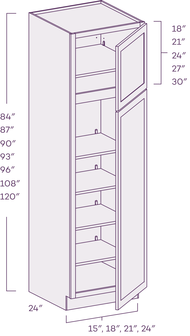 The ceiling’s the limit. 108” and 120” tall cabinets bridge the gap to high ceilings in a single click. That means you can create lofty looks without any stacking or frame seams.